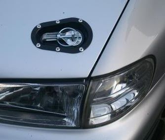 De bekende aluminium motorkapsluiters/bonnetpins die het meeste worden gebruikt.