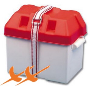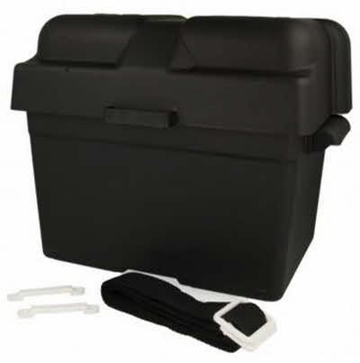 Stabiele vloeistofdichte accu-bak met spanband van Polypropyleen.