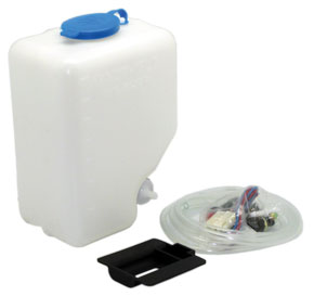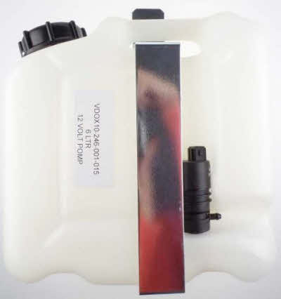 VDO ruitensproeiertank set met kunststof tank (4 liter), voorzien van geïntegreerde pomp, filter, deksel en montagebeugel/-houder.