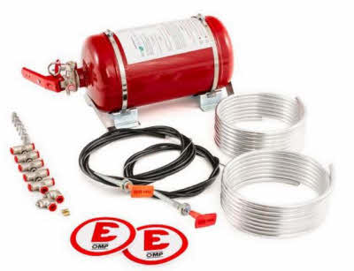 Compleet brandblussysteem van OMP. Dit brandblus-systeem is gemaakt volgens FIA regels. Deze blusser is geschikt voor saloon cars onder andere circuit, rally, race, en meer..