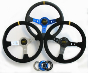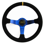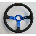 Suede, 3 spaaks (blauwe spaak), 90mm verdiept.Diam: 350mmIncl. stuurring en claxon!