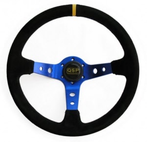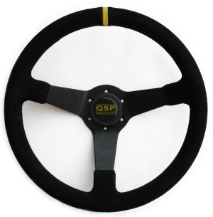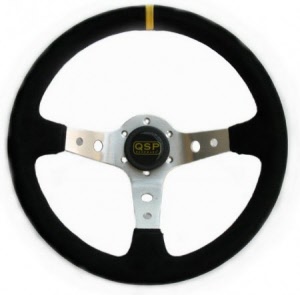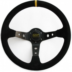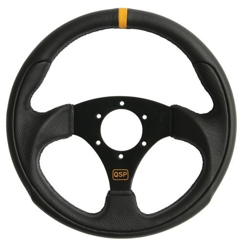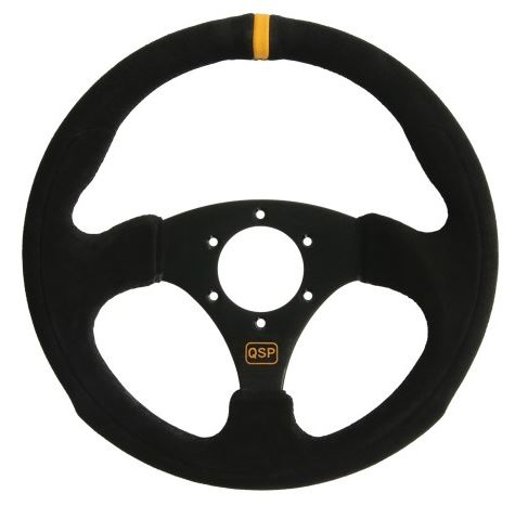 QSP suede sportstuur, 3 spaaks, vlak, spaakkleur = zwart. Diameter: 380mm