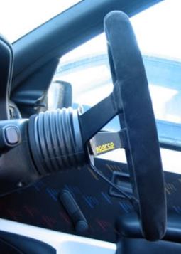Sportstuur van LTEC met de kleine diameter van 300mm en vlakke uitvoering voorzien van ergonomische Suede handvat.