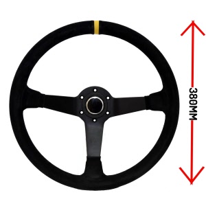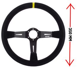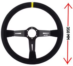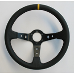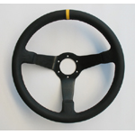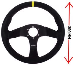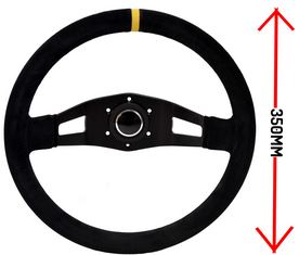 Suede, 3 spaaks (zwarte spaak), 70mm verdiept.Diam: 350mmIncl. stuurring en claxon!