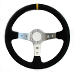 Suede, 3 spaaks (zilveren spaak), 70mm verdiept.Diam: 350mmIncl. stuurring en claxon!