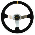 Suede, 3 spaaks (zilveren spaak), 90mm verdiept.Diam: 350mmIncl. stuurring en claxon!