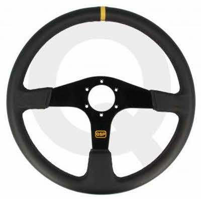 QSP lederen sportstuur, 3 spaaks, vlak, spaakkleur = zwart. Diameter: 380mm