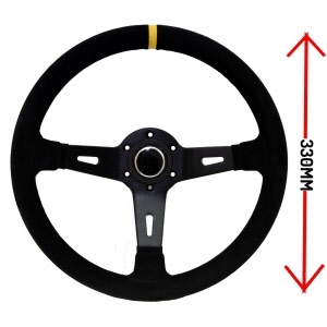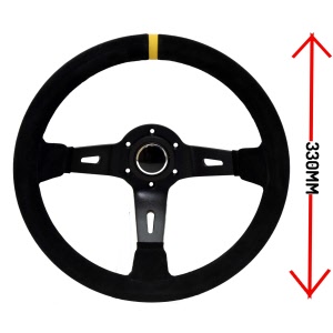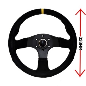 Suede, 2 spaaks (zwarte spaak), 70mm verdiept.Diam: 330mmIncl. stuurring en claxon!