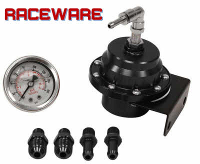 Instelbare benzinedrukregelaar voor hogere druk injectiesystemen met dubbele membraam voor extra "Boost". Geschikt voor standaard en getunede auto's.
